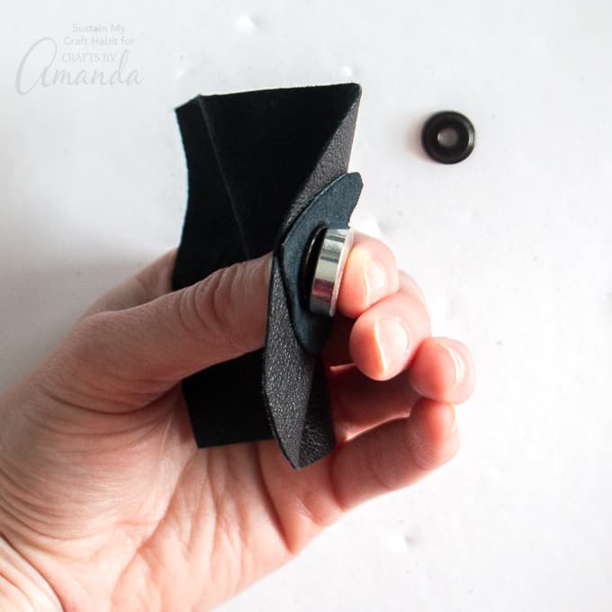 Repeat with the bottom side of the snap parts in the remaining hole on the opposite end.