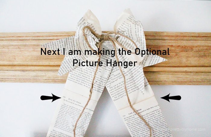 To create the optional long ribbons for hanging , take a piece of ribbon and fold as many book pages as you need to cover the ribbon. Place the paper around the ribbon and mod podge it on the back side to hold. I used burlap ribbon, but you can use any leftover ribbon you want to as long as its the width you want. the ribbon won’t show at all.