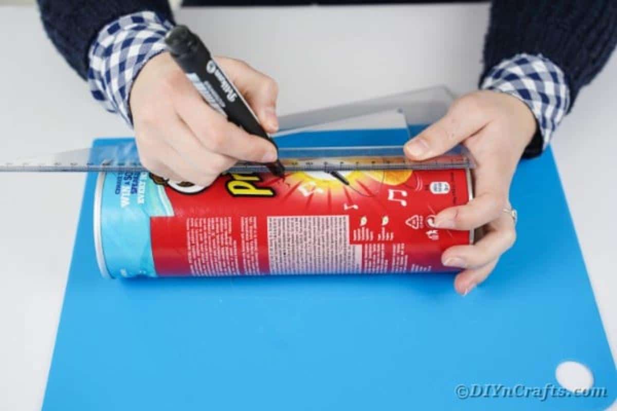 Measure and add a line to the can where you want to cut it to size.