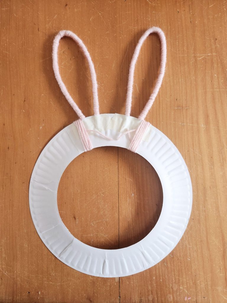 Attach your bunny ears to the back of your paper plate using masking tape or sticky tape.