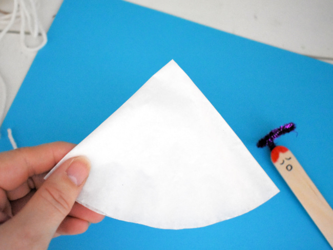 Open the coffee filter to where it’s folded in half just once and insert the craft stick into the hole.
